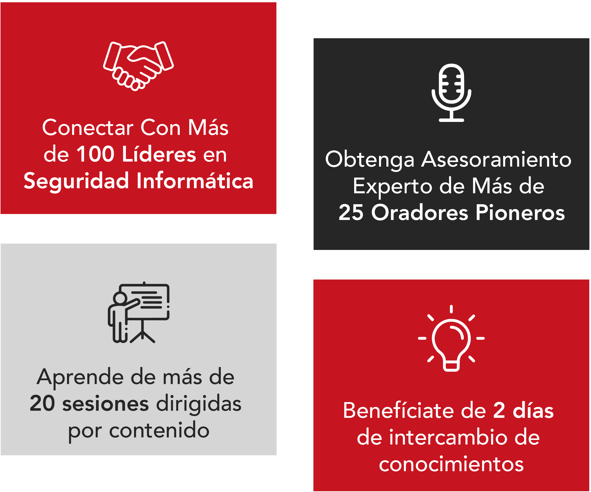 Durante 2 días, exploraremos las tendencias más importantes en estrategia de ciberseguridad, herramientas y estándares, a través de una agenda repleta de sesiones educativas e interactivas dedicadas a la construcción de conocimientos, la planificación estratégica y el intercambio de conocimientos expertos.